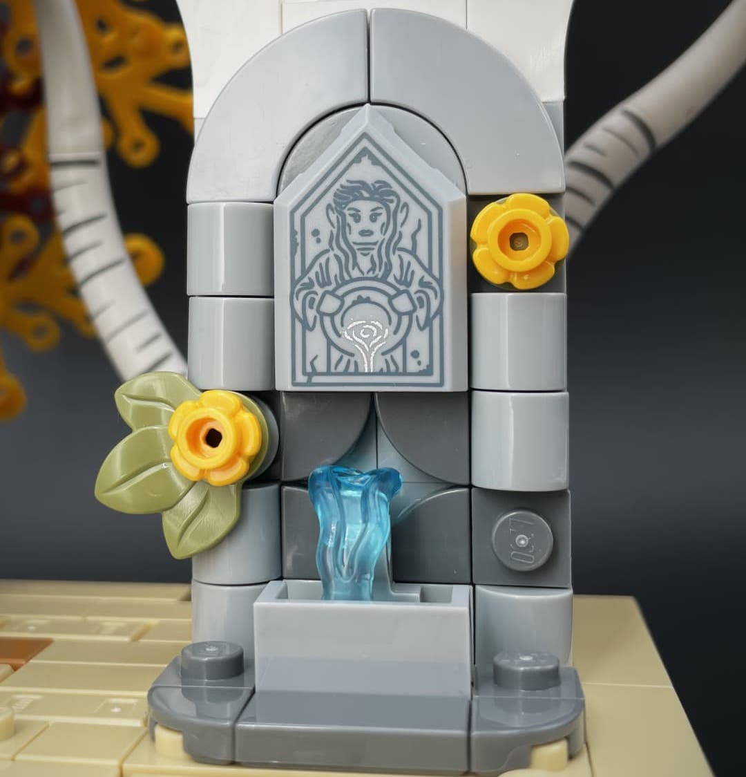 Motiv: Elbin mit Schale in Dark-Bluish-Grey und Wasser (Schaleninhalt) in Hochglanzsilber auf einer Light-Bluish-Grey Fliese.