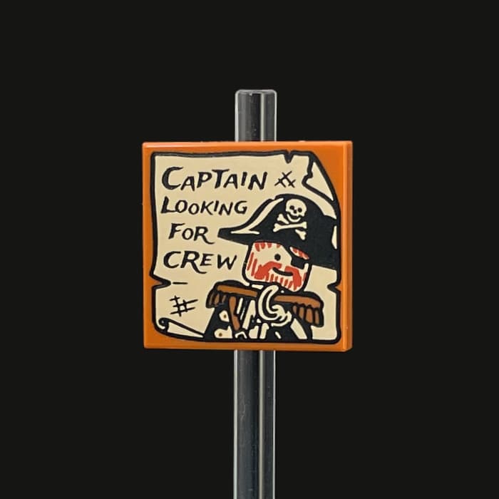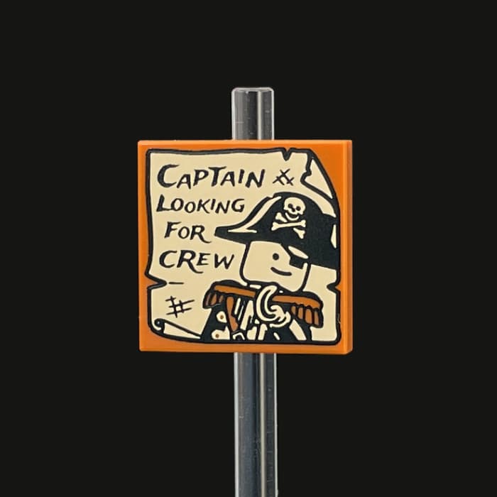 Motiv: Piraten-Kapitän mit Schriftzug auf einer 2x2 Dark Orange Fliese. Druck wahlweise erhältlich als Version mit Bart "Redbeard" mit Druck in Tan, Red und Black auf einer Dark Orange Fliese oder als Version ohne Bart "Nobeard" mit Druck in Tan und Black auf einer Dark Orange Fliese.